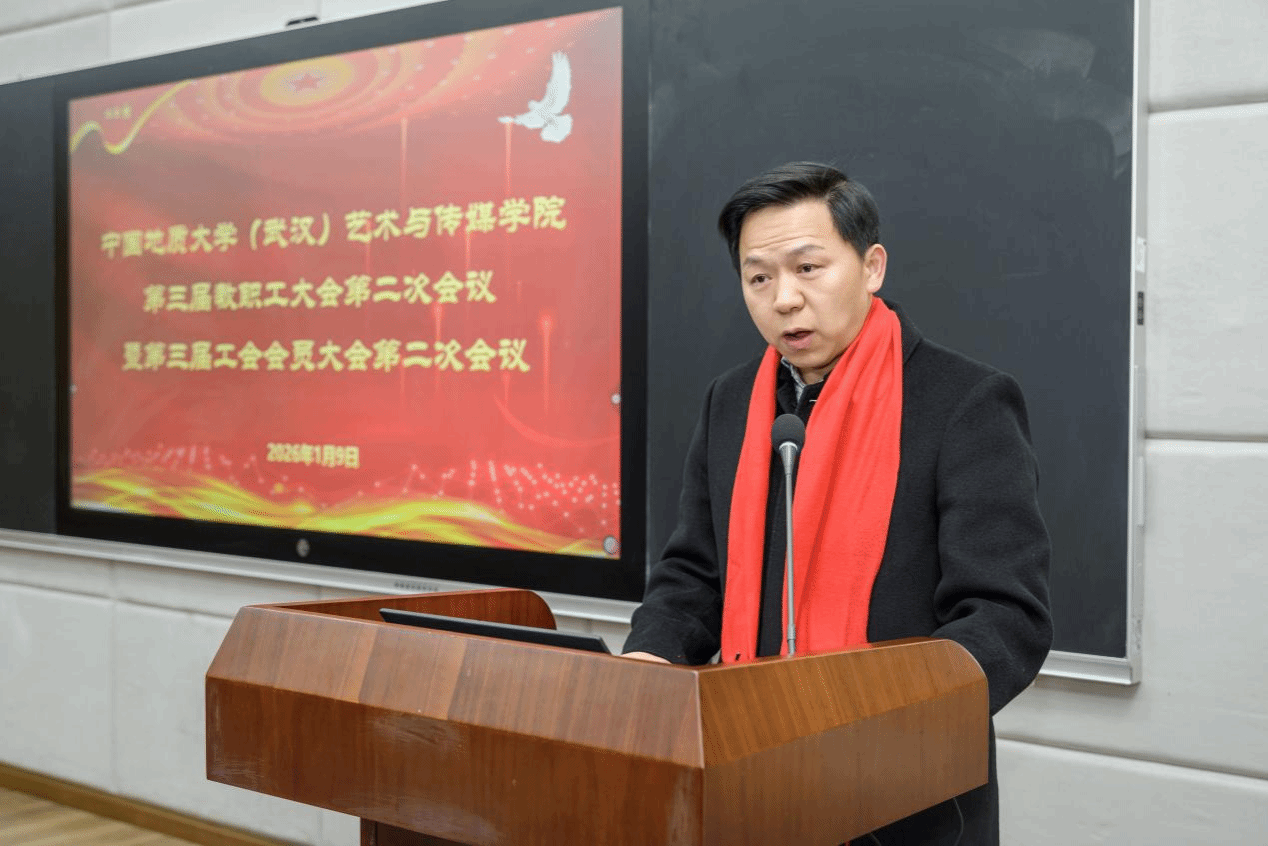 学院党委书记冷再心作闭幕致辞。他表示,2025年,学院在学校党委行政的领导下,在校工会的关怀指导下,在全体教职员工的齐心协力下,以立德树人为根本任务,以学科专业建设为核心使命,以党建思政工作为引领保障,本科教育教学工作平稳有序,研究生培养工作稳中有进,科学研究与学术交流工作稳中有增,美育实践和学生工作扎实有效,有力保障了学院事业发展。2026年,全院上下将坚决贯彻落实学校党委行政的各项决策部署,凝心聚力、砥砺奋进、守正创新、狠抓落实,为学校建设地球科学领域世界一流大学贡献艺媒力量!