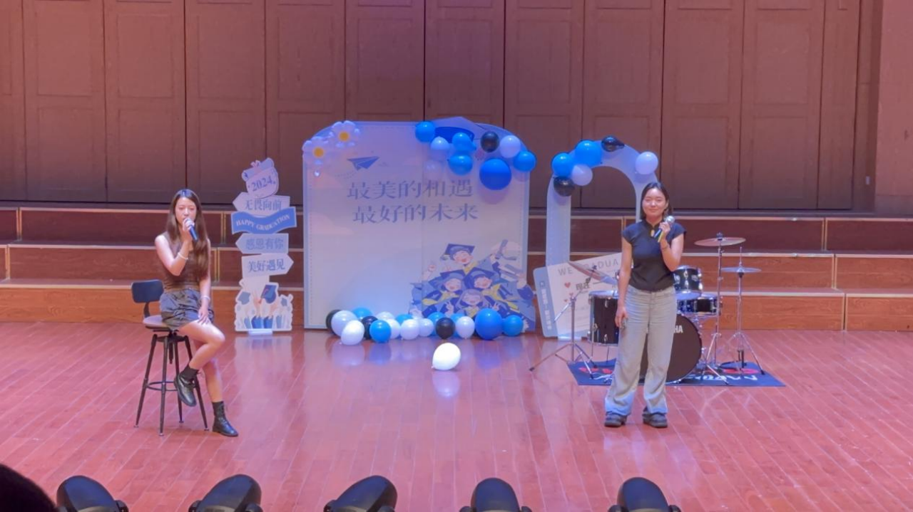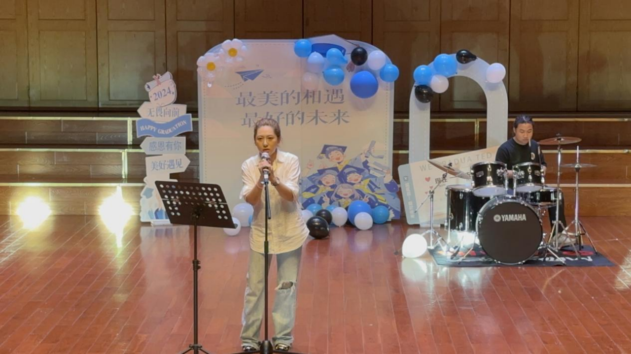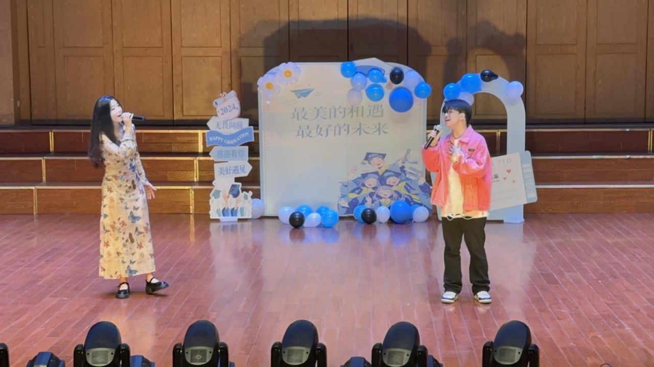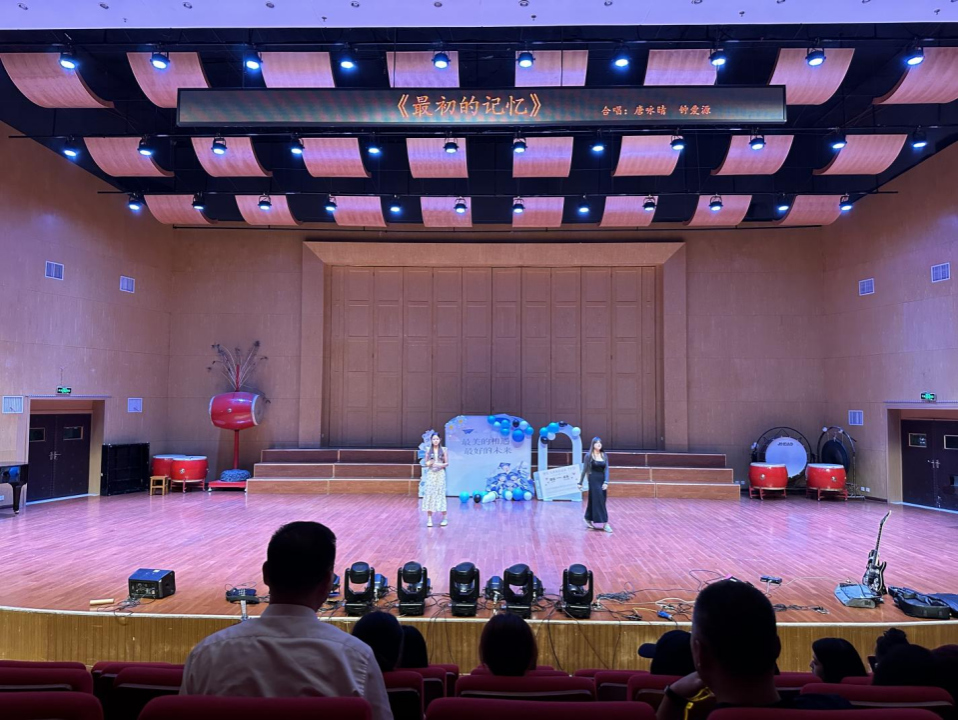 最后,唐咏晴和钟爱源的合唱《最初的记忆》将现场观众带入了对学生时代美好时光的深情回顾之中。歌声充满了对过去的怀念,让同学们更加珍惜这段难忘的青春岁月。