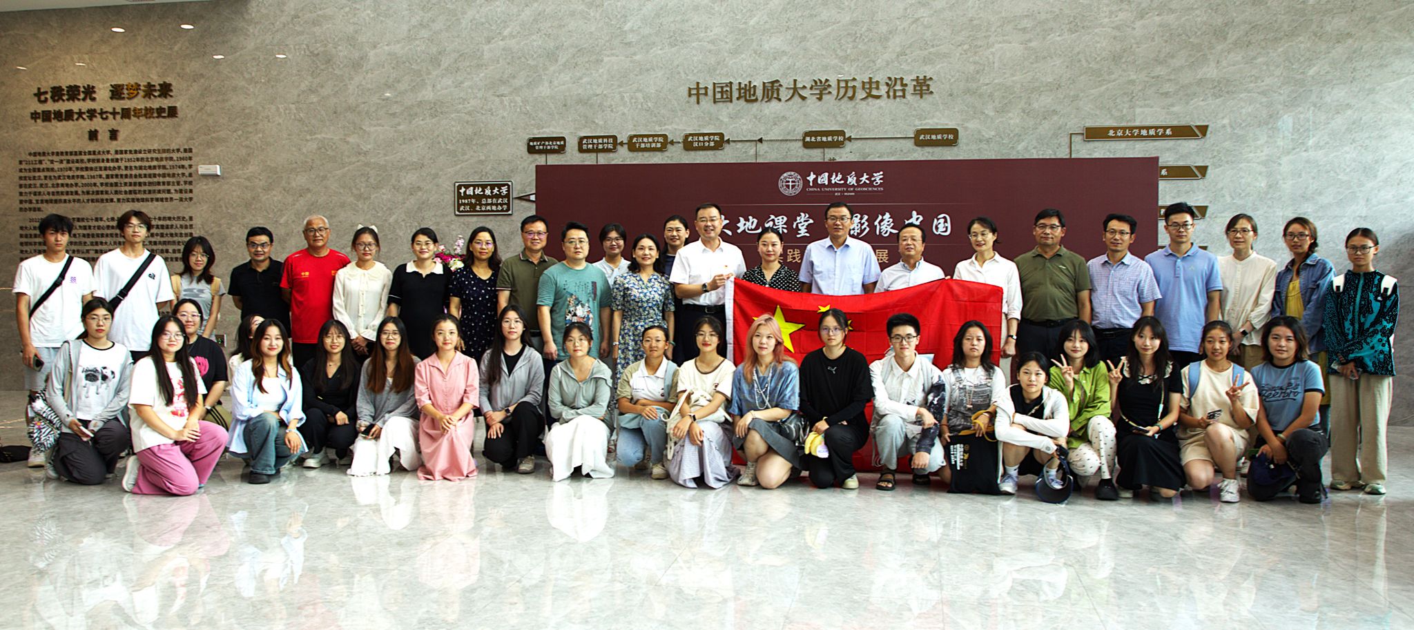 开幕式后,领导、来宾和师生代表们一同观看了展出的实践教学优秀作品。据了解,本次教学成果展开放时间为9月26日至11月9日,共展出摄影作品50幅、摄像作品11部、教学实习报告20份,分为地质文化、人文历史、乡村振兴、非遗保护与传承四个版块。作品以广播电视学专业师生的视角,集中展现祖国大地的钟灵毓秀之美与蓬勃发展的生动实践,记录了地质文化的魅力、人文历史的底蕴、乡村振兴的活力和非遗传承保护的担当与使命,洋溢着广电师生对专业实践的满腔热情和对祖国的无限热爱。