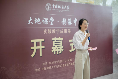 晋曦代表学院讲话。他说,重视实践教学是地大的优良传统,对于人文艺术专业师生而言就是要“把作品创作在祖国的大地上”。广电专业开办20年来,师生牢记弘扬主旋律初心、担当传播正能量使命,脚踏祖国大地、记录时代变迁,此次成果展,便是二十载奋斗时光的缩影。这些年来,广电师生爬过江西庐山,到过湖北巴东,再到今年初登安徽天柱山,变化的是实习地点,不变的是坚持把国情教育融入实践教学,把思政元素贯穿实习全程,让一次次教学实习成为触摸美丽中国和体悟当代中国的心灵之旅。他表示,学院将不断拓展实践育人和网络育人的空间和阵地,把实践教学成果更多、更好地转化为育人资源,为学校“五育并举”、立德树人贡献艺媒力量。