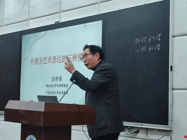 晚上7点,主题为“中西方艺术表达的三种模式”的主题论坛在艺媒楼1104报告厅顺利举行。彭修银教授作为艺术美学、东方美学与艺术史的权威代表,他的研究成果为我们提供了丰富的学术资源和深刻的艺术见解。本次论坛将结合他的研究成果,深入解析中西方艺术表达的三种模式。