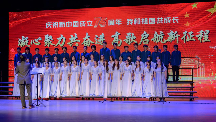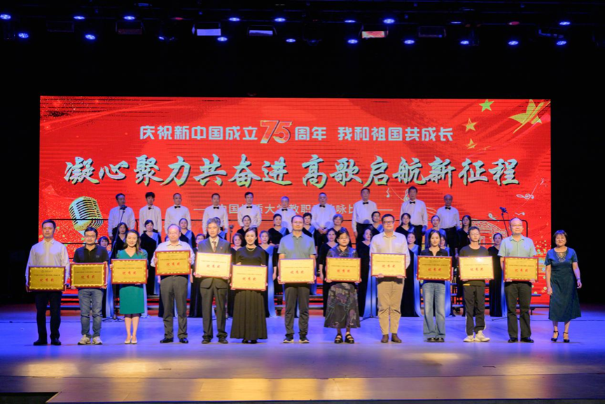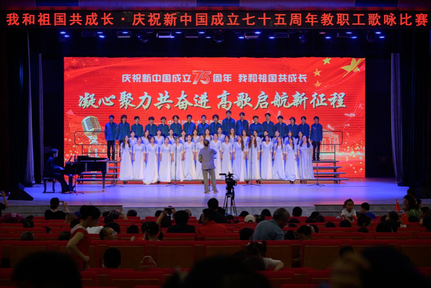 秋风渐起迎华诞,山河锦绣正当红。为庆祝中华人民共和国成立75周年,9月26日19:00,学校于弘毅堂开展“我与祖国共成长·庆祝新中国成立七十五周年”教职工歌咏比赛,学校各分工会齐聚一堂,用歌声共庆华诞!