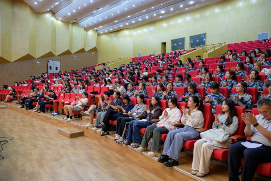 最后,院党委书记晋曦进行总结发言。晋书记再次向2024级新生表示热烈欢迎,并向同学们提问“在接下来的1000多天里怎么度过”,鼓励同学们做中华优秀传统文化、革命文化、社会主义先进文化传播者,增强话语体系实践能力,向下扎根,向上生长。