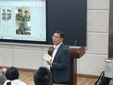 讲座互动环节,陈国栋就如何采访典型人物,如何设置话题这一问题展开讨论。他说,采访前期提前做好功课,学会设置话题,以坚持不懈的精神,发掘典型人物的人格魅力。