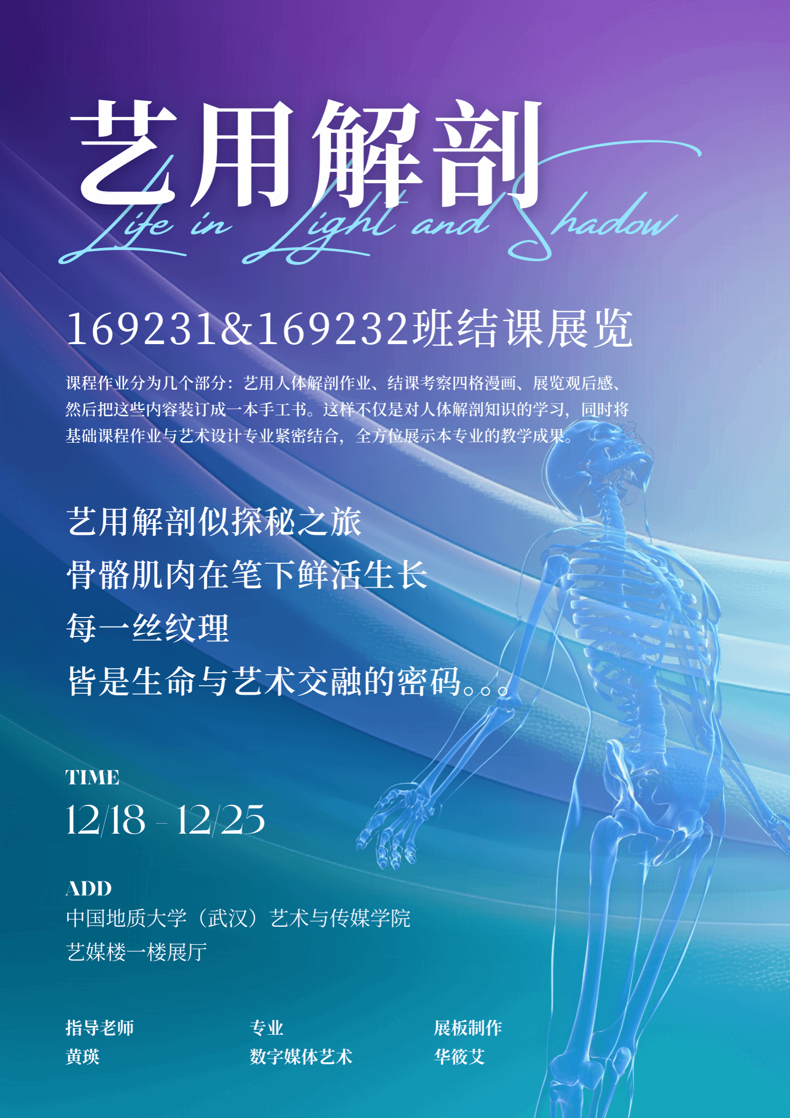 (通讯员:汤雨禾 周睿琪)2024年12月18日-2024年12月25日,在艺术与科学的交汇点上,williamhill英国大楼一楼中厅,黄瑛老师指导数字媒体艺术专业169231&169232班的学生们以一场结课展览,展现了艺用解剖学的独特魅力。这场展览展示了学生们对人体解剖学的深刻理解,同时将艺术设计与课程作业紧密结合,以手工书的形式,多角度呈现了艺用解剖学的丰富内涵。