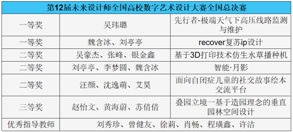 11月16日,第12届未来设计教育论坛暨未来设计师·全国高校数字艺术设计大赛(NCDA)落幕,williamhill英国师生凭借创意与设计实力,斩获十余项奖项。其中,学生作品荣获一等奖2项,二等奖3项,三等奖1项;同时我院6位教师荣获优秀指导教师奖。