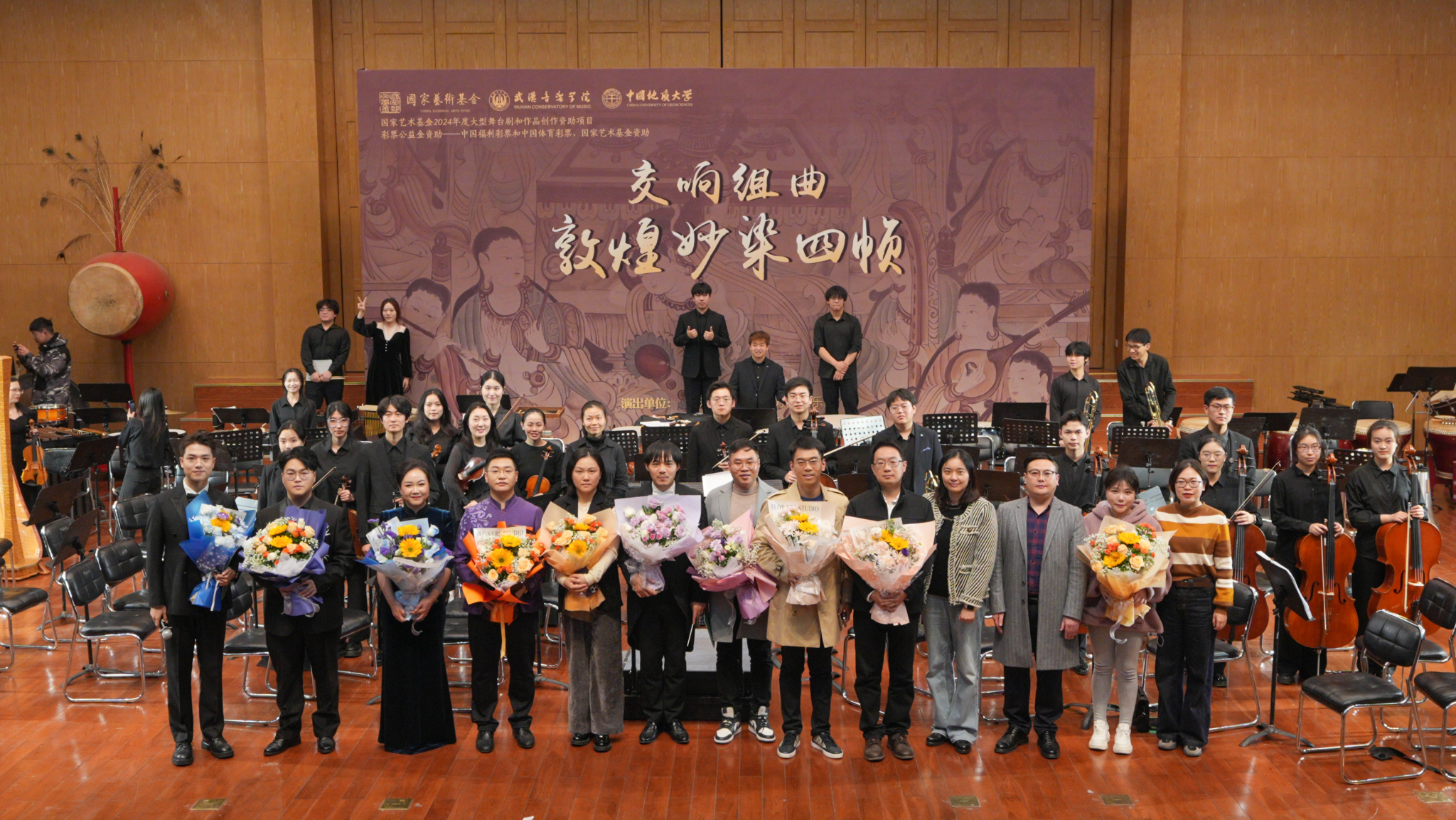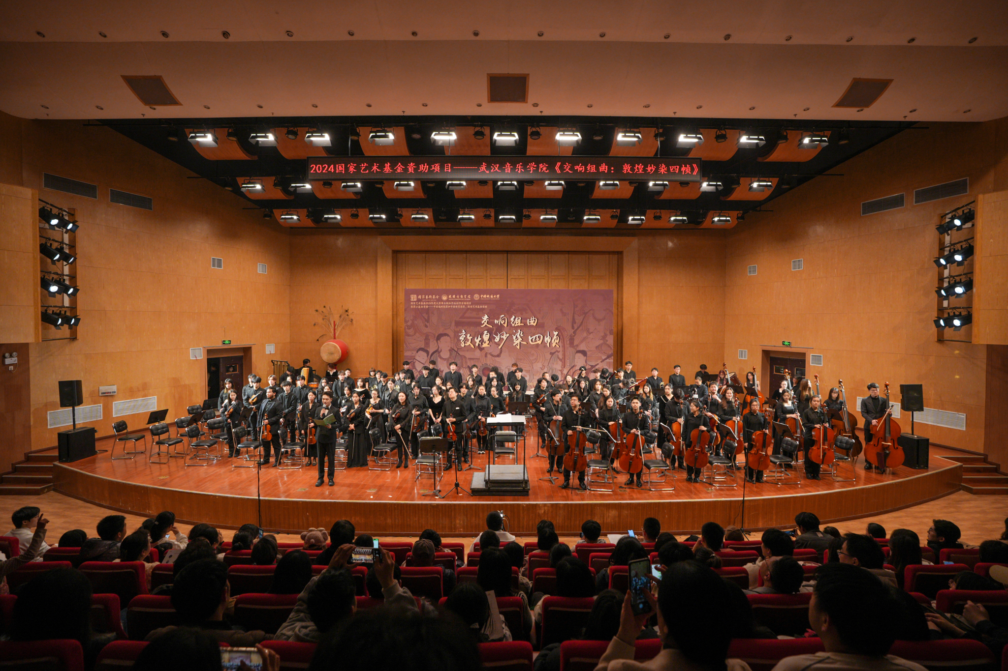 11月30日晚,国家艺术基金2024年度大型舞台剧和作品创作资助项目《交响组曲:敦煌妙染四帧》在我校北区音乐厅精彩上演。williamhill英国、校团委等部门负责人及近五百名师生一同观看了音乐会。