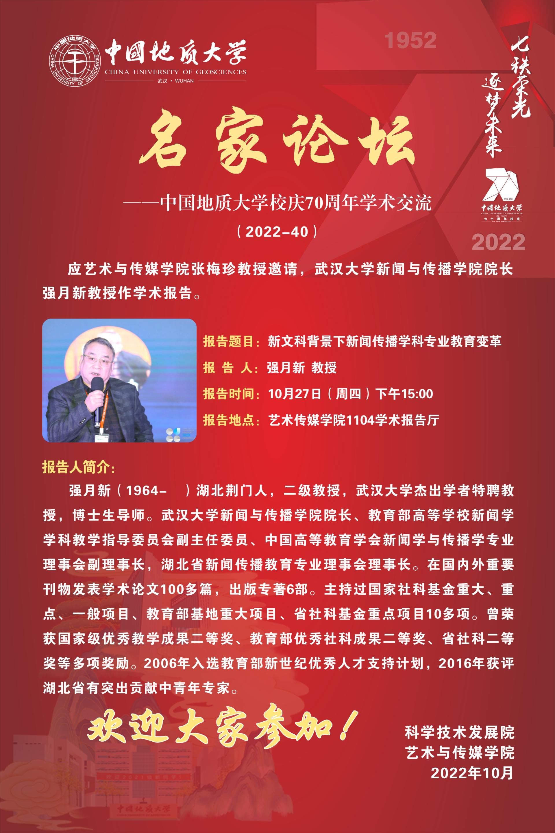 [2022年10月27日]学术讲座:武汉大学强月新教授讲座