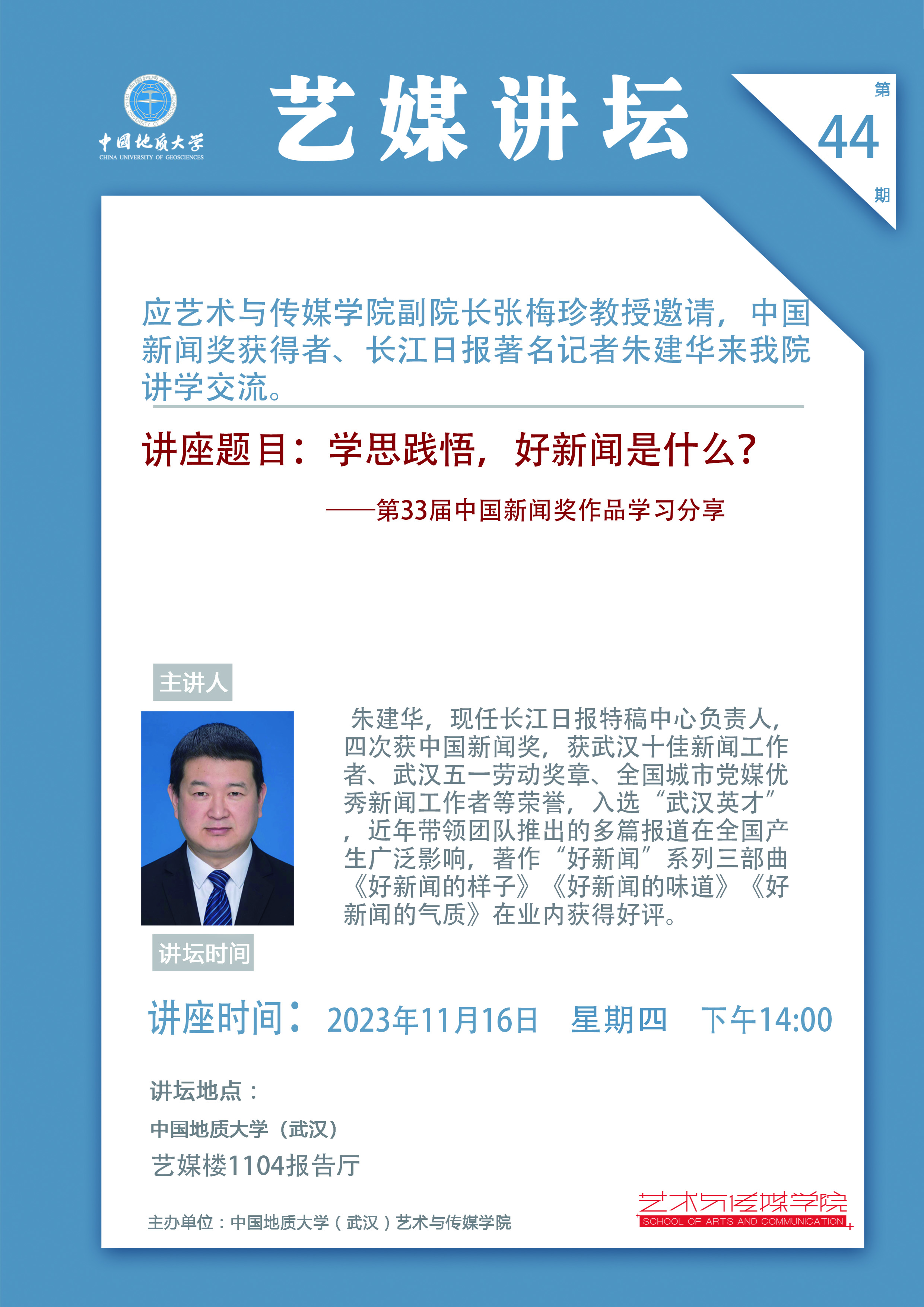[2023年11月16日]学术讲座:中国新闻奖获得者、长江日报著名记者朱建华来我院讲学交流