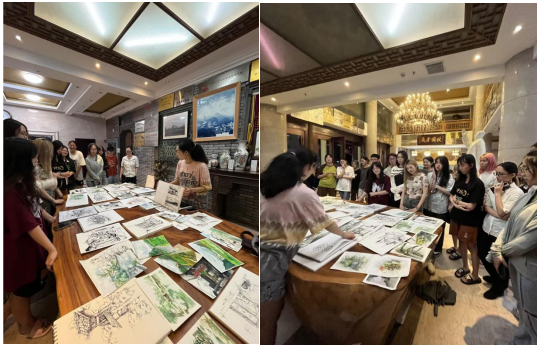 同学们在理坑进行踩点考察后,开始用画笔描绘出理坑和基地周边的美貌。在绘画完后集合起来,老师对我们的画作进行讲解,使我们对这次写生有了更清晰的认识和了解。