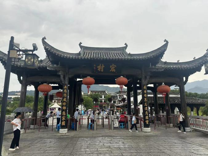 第六天,大家来到了宏村考察,宏村相比皖南地区其他的徽派民居更加商业化,这里的淳朴和自然已经逐渐淡化,但好在白墙青瓦的民居建筑保留了徽州的特色和历史文化。村落依山傍水,村中的月昭池是宏村特色的点缀,古民居在月昭池上的倒影如同一幅水墨画,大街小巷的涓涓细流也让宏村更具有活力。当天的绵绵细雨打湿了石板路,清新潮湿的空气沁人心脾,配合随处可见的红灯笼,给人即闲适又热闹的感受,此刻我们远离了城市的喧嚣,真正进入这座千年古村。