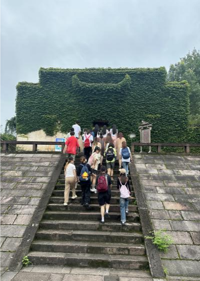 第十天,早上八点出发,由老师带领前去守拙园,守拙园是陶渊明老先生的故居,在一步一景的卷轴古画里穿梭,当登上最高观景阁楼向四周俯瞰时,不禁可以用眼睛解读了“采菊东篱下,悠然见南山”的诗句。