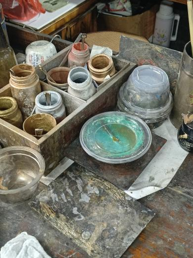 在歙砚厂,可以看到歙砚石,参观工人手工制砚的工序,对比老料和新料。瑟瑟方池雾毅纹,麝烟初散墨花春。晴窗昼静桐阴转,笔下云生字入神。徽墨制作工艺复杂,这也是其珍贵之处。