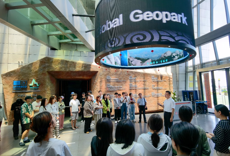 图为7月6日,学院党委书记晋曦在天柱山博物馆与同学们交流