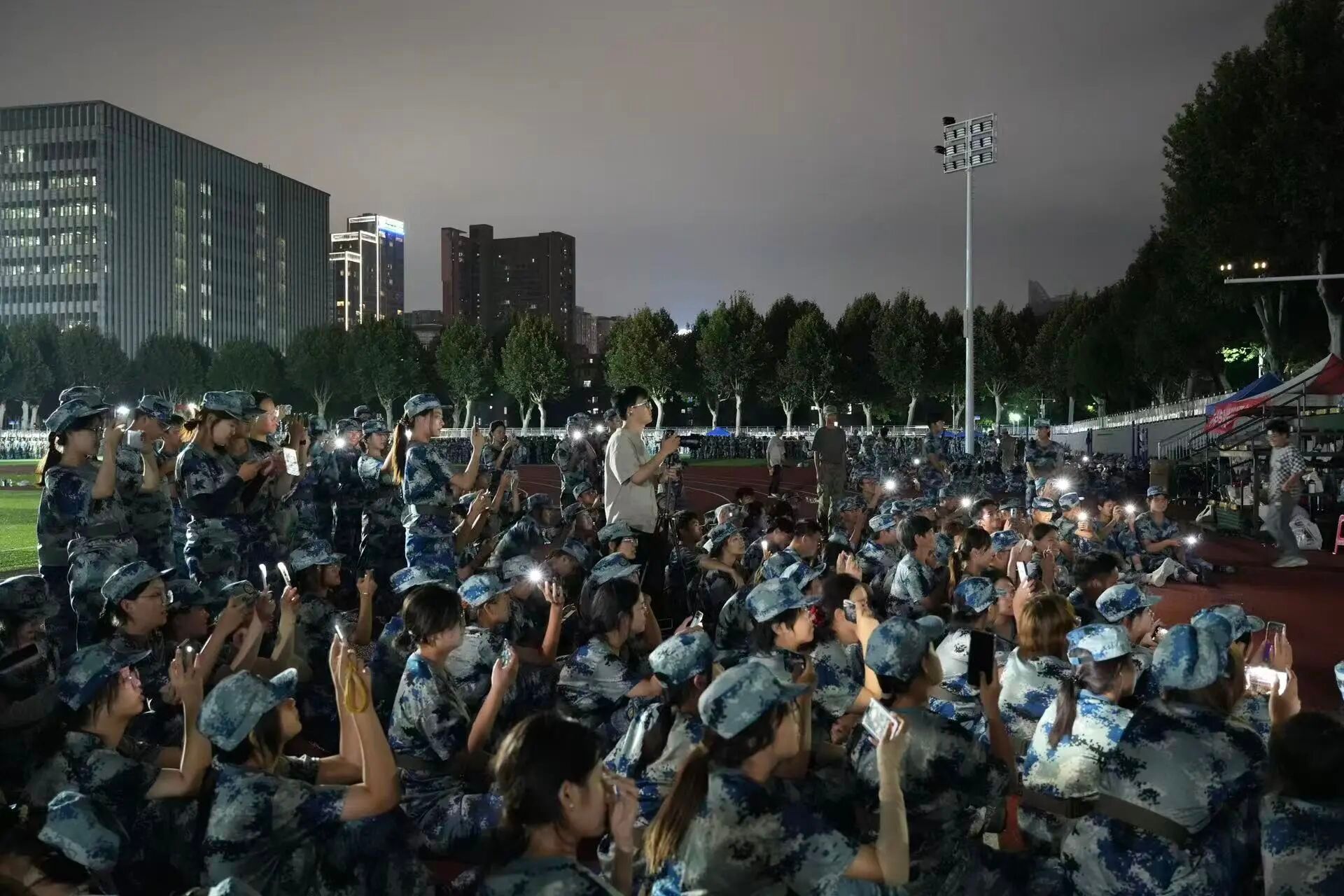夜幕降临,训练场的余温尚未散尽。在各方支持组织下,williamhill英国与新能源学院方阵联谊举办了精彩绝伦的文艺表演,他们用歌声传递热忱,用舞蹈绽放青春,让寂静的夜晚变成了充满欢声笑语的青春舞台。