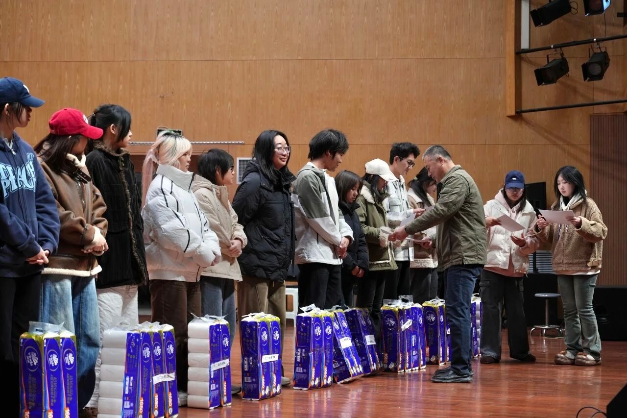 接下来进入优秀宿舍表彰环节,陈老师宣读了2025年10月“文明和谐优秀宿舍”名单,由学院党委副书记边建华老师为优秀宿舍的学生代表颁奖。