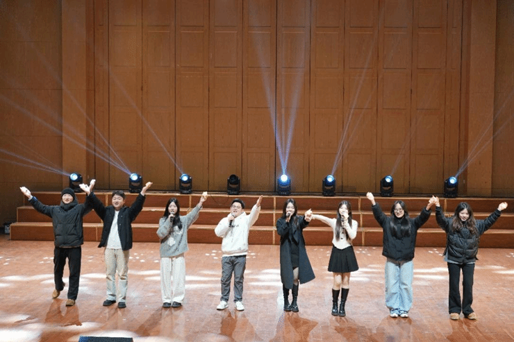 晚会尾声,2025级本科新生辅导员、助理班主任和同学们共同唱响《左手右手》,温暖亲切的歌声传递着陪伴与守护,为整场晚会画上了一个温馨而有力的句号。
