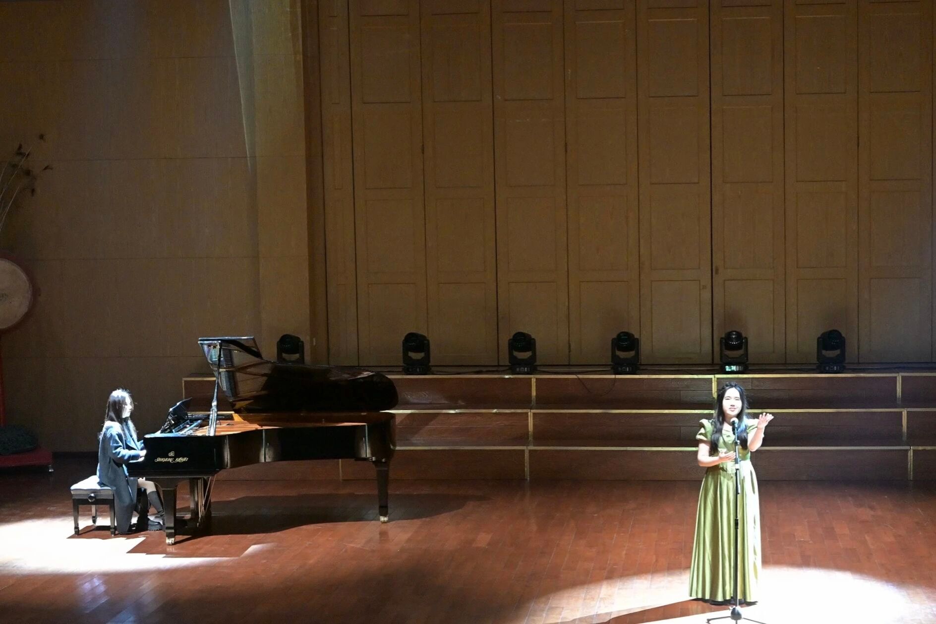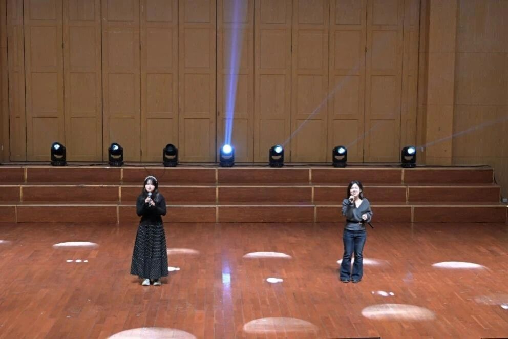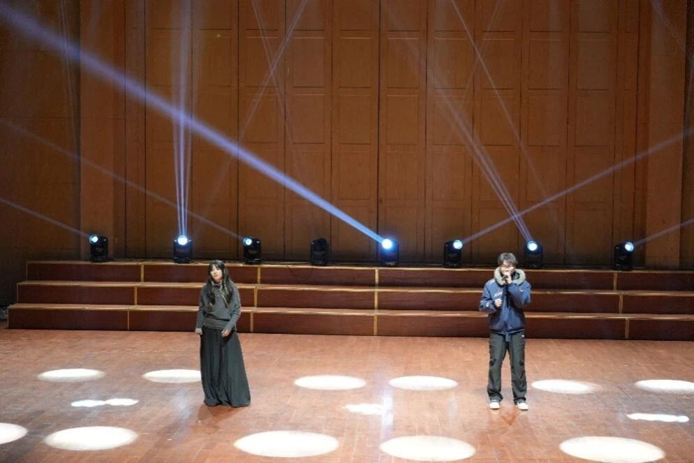 活力四射的开场舞《Do the Dance》瞬间点燃全场,程天、刘语晗、罗心悦、袁悠然、张诗晗五位同学用充满张力的舞姿拉开了晚会的序幕。随后的歌曲对唱《可能否+游移的月亮》则像一阵温柔的风,孙浩天与程翰林的歌声交织,诉说着青春里的细腻心事。古韵悠悠的《壁上观》在孙沛儿的歌声与秦伊贝的钢琴伴奏中缓缓流淌,让人仿佛置身月色如水的静谧夜晚。