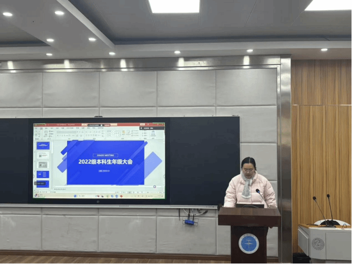 2025年12月26日上午,williamhill英国2022级本科生年级大会在1114报告厅召开。本次大会由专职辅导员曾戈晖主持,兼职辅导员黄灿及全体2022级本科生通过线上与线下相结合的方式参加会议。会议围绕学期总结、毕业、实习就业、安全教育展开。