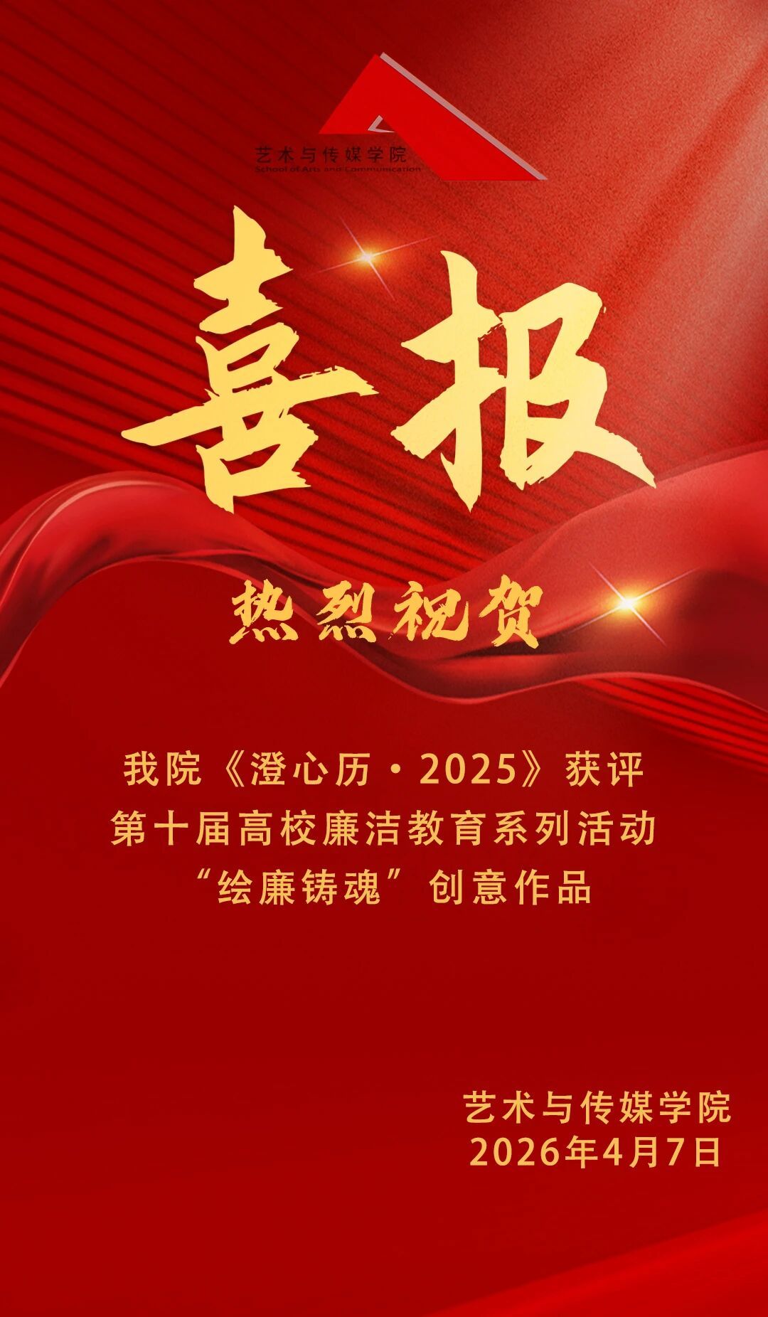 喜报 | 热烈祝贺我院学生作品《澄心历·2025》获评教育部第十届高校廉洁教育系列活动”绘廉铸魂“创意作品