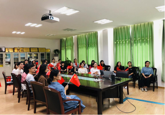 在大会刚刚开始前,同学们便全体起立,挥舞手中的国旗,一直站立至升国旗仪式结束。习近平总书记讲话时,同学们认真聆听,庄重肃穆,牢记习近平总书记的嘱托,继续努力奋斗,不忘初心,牢记使命,展现自己的青春力量,为实现中华民族伟大复兴的中国梦而努力奋斗。