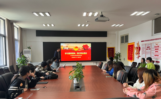 2022级研究生新闻传播学班团支部书记陈欣同学带领大家学习两会新理论。她围绕两会介绍了《政府工作报告》中“新质生产力”的提出背景及理论内涵,并带领大家回顾了“四个自信”的确立过程和坚定“四个自信”的重要意义。