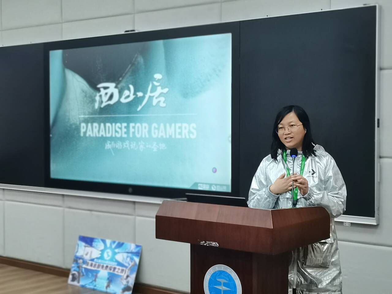 首先主讲负责人廖宇琪为同学们介绍西山居的公司背景,该公司是一家以武侠科幻游戏制作为主的游戏制作公司,背景雄厚,制作游戏众多,且斩获多次国内外大奖。紧接着用一系列的实拍图片为同学们展现西山居公司大楼基础设施并讲解了薪酬结构以及福利政策,例如食宿餐补,全海景员工宿舍,宵夜下午茶,节日礼盒,泳池派对,各种俱乐部等等,福利覆盖范围广泛。