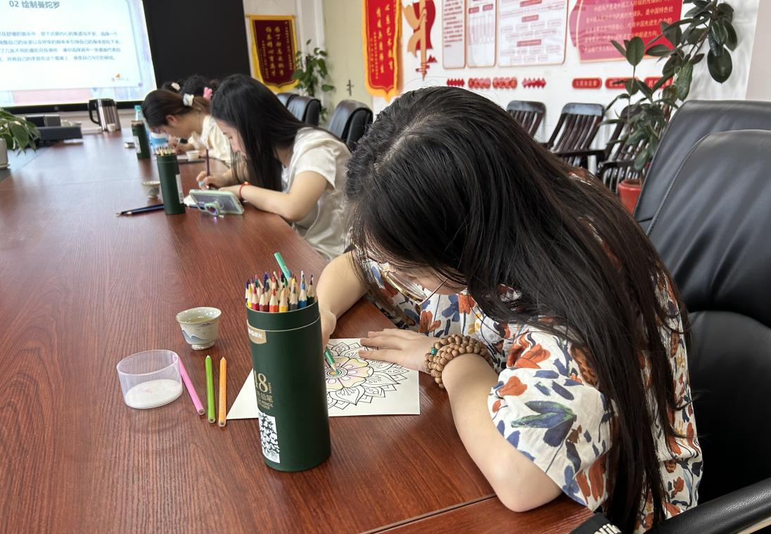 在轻松的音乐中,同学们开始现场绘画,充分发挥创造力和想象力,用色彩和线条绘制出属于自己的曼陀罗之花。