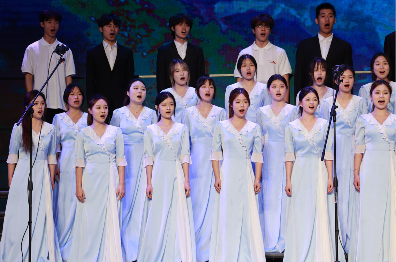 学院星空合唱团在比赛的末尾为全校师生献上了表演唱《长江之歌》。长江是中华民族的母亲河,在流水般柔和有力的歌声里,我们感受到将大自然与祖国融为一体的热爱;感受到中华民族传承千年、自强不息的力量。蓝白长裙翩翩,一曲终了,奔涌的江水与变革的时代似在眼前。