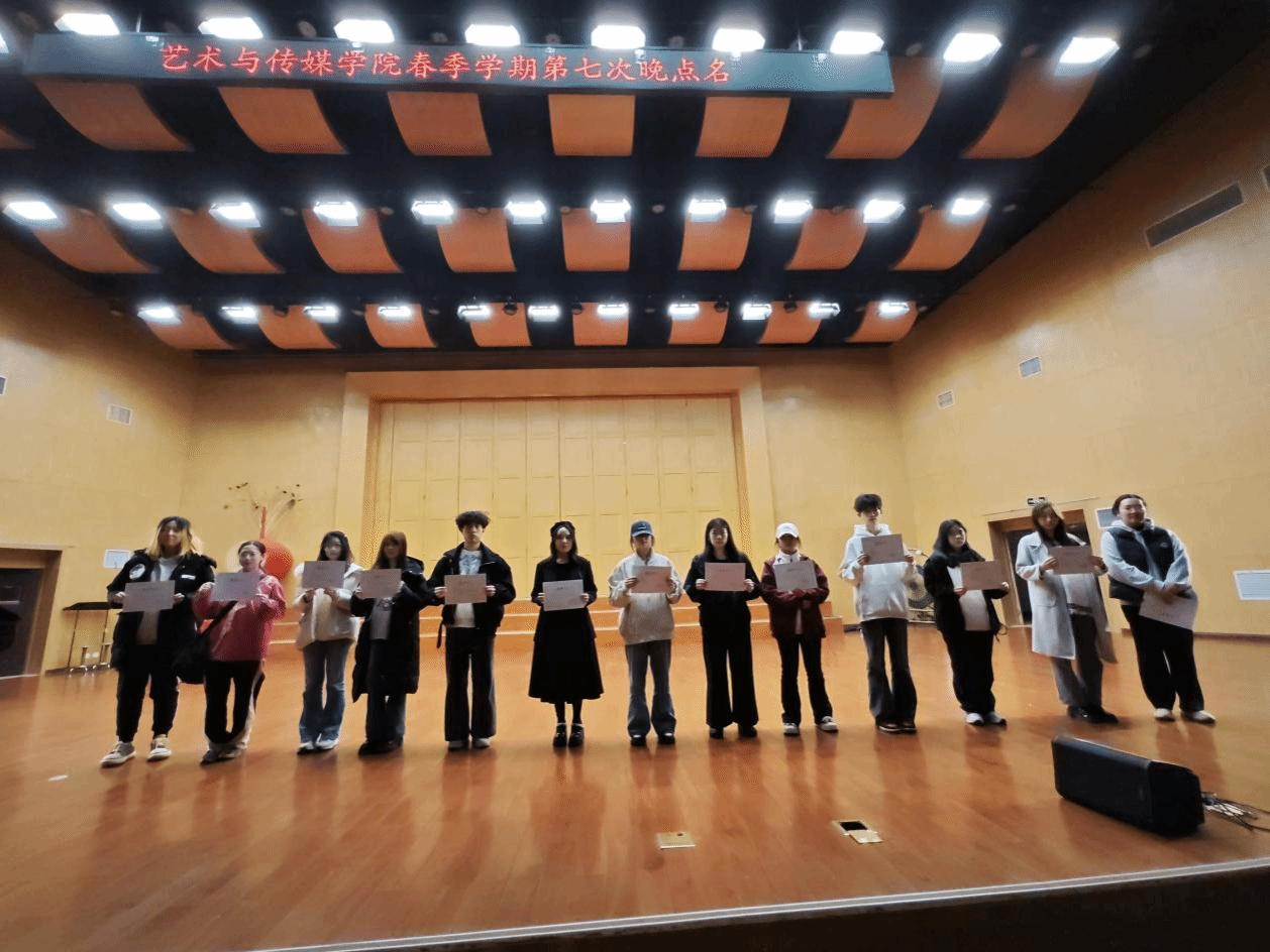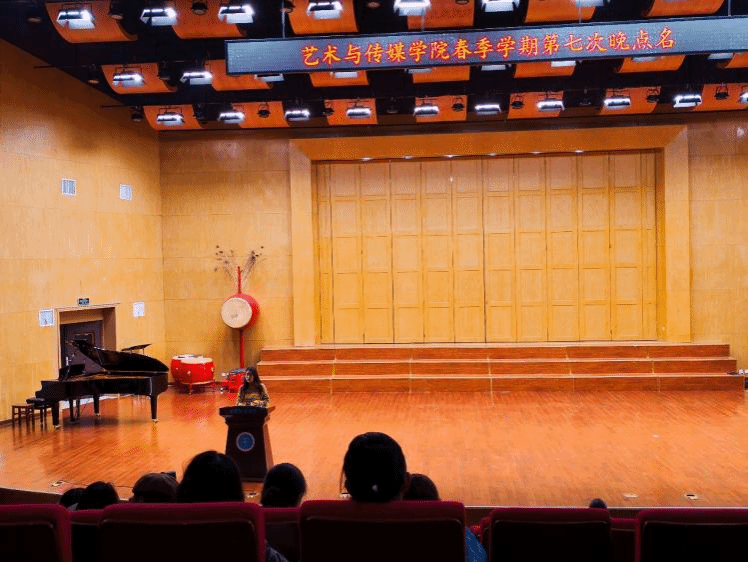 2025 年 3 月 31 日晚,williamhill英国在音乐厅组织开展春季学期第七次晚点名活动。本次活动围绕保研经验分享、早操荣誉表彰、日常管理规范三方面内容展开,学工组辅导员曾戈晖、兼职辅导员吴健以及全体2024级本科生参加本次活动,视觉传达设计专业 2021 级优秀学生李怡雯受邀担任分享嘉宾。