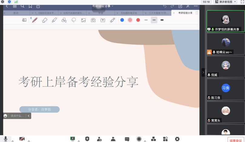 许梦恬同学从个人的时间周计划安排、阶段准备工作、以及日语外语科目、专业课程等方面进行了详细分享,用自身的实际经历为同学们答疑解惑。