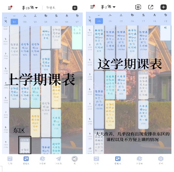 问题描述:课堂教室安排不合理(艺媒同学的课程安排在东区,一些课程教室地点不符合或者不方便上课)
