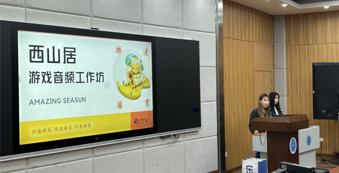首先,西山居介绍公司基本情况,企业文化,设计产品等。通过宣传片和音效等形式展示了公司的岗位就业方向。并且向同学们介绍了游戏开发的多个模块,主要分享了音频类的制作流程,从定位、功能性、环境分析等角度进行功能设计,应该如何根据人群受众制作音频。