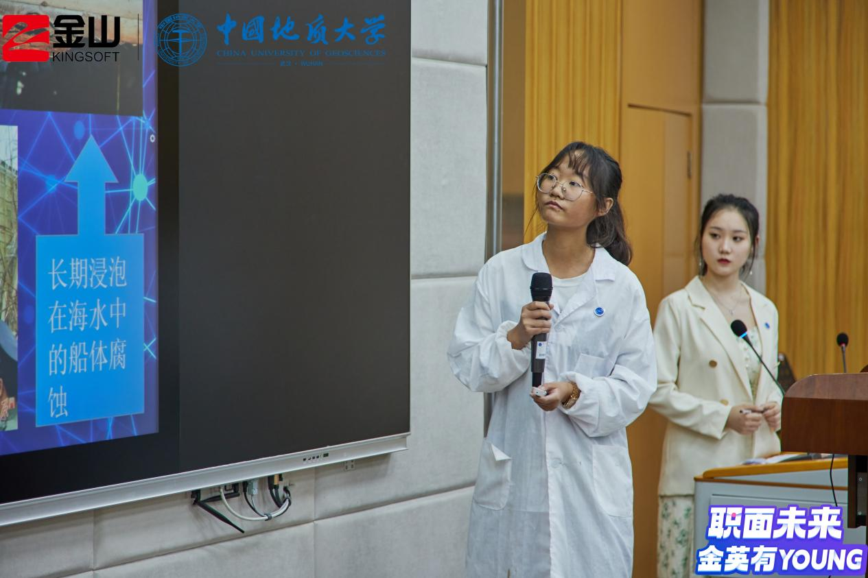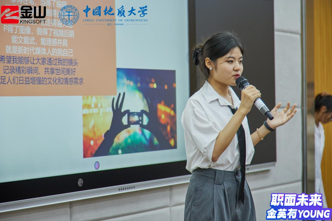 活动伊始,金山集团武汉总部招聘经理徐霞为同学们介绍了金山集团的业务构成与主要产品,预热了赛场气氛。随后,比赛正式开始。七位决赛入围选手依据赛前抽签顺序依次进行答辩,在个人陈述阶段,选手们从生涯故事、个人和职业探索、目标设定、行动计划等方面从不同专业角度出发展示了他们的职业生涯规划;在评委提问环节中,选手们积极回答现场评委老师的问题,互动十分精彩。