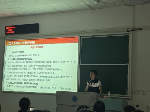 最后一场讲座的主讲人是艺媒学院学工组辅导员、党建办公室主任陈习良老师。陈老师向全体新生介绍了学生入党、党员教育等工作。他从“艺术+”党建特色品牌出发,讲解了党组织建设与入党积极分子培训等内容。接着,陈老师就入党申请书的写作要求进行指导,提醒大家端正入党动机,审视自己内心,鼓励大家以实际行动争取入党机会,并得到了许多同学的积极响应。