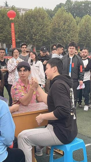 艺媒人在操场上留下一副靓丽的风景线
