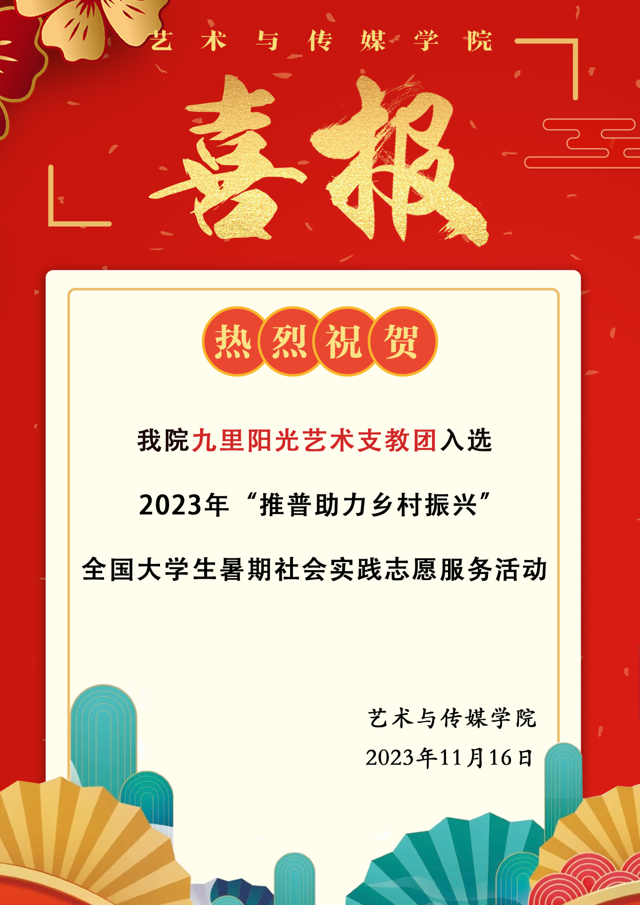 喜报|热烈祝贺我院九里阳光艺术支教团入选2023年“推普助力乡村振兴”全国大学生暑期社会实践志愿服务活动