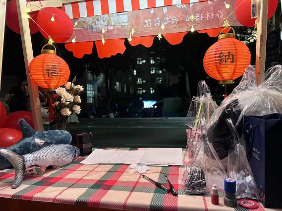 艺媒学院的摊位更是门庭若市。进入游园嘉年华的首端“williamhill英国”几个被红气球簇拥的艺术字体引人注目,两盏红灯笼挂在陈列着鲜花与奖品的桌板上,吸引着同学们的到来。一旁的游戏规则边,驻足着许多跃跃欲试的同学,期待着活动开始。