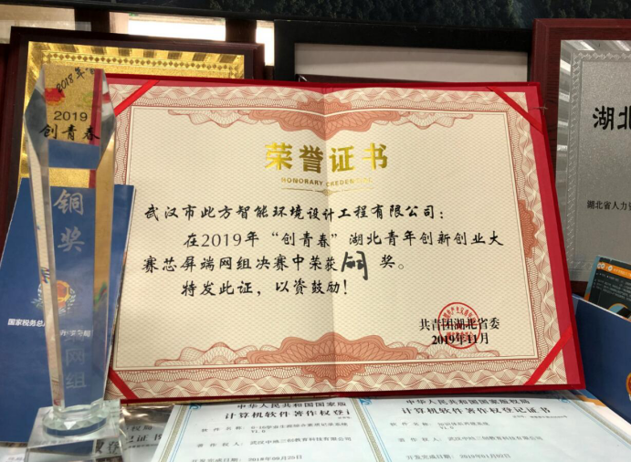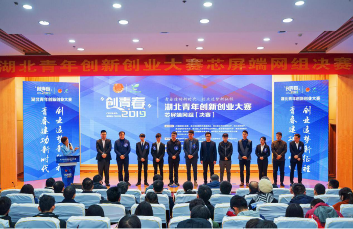 (通讯员:陈习良)青春因“双创”而闪亮,“双创”因青年而精彩!11月27日下午, 2019年“创青春”湖北青年创新创业大赛芯屏端网组决赛暨总决赛颁奖典礼在武汉理工大学成功举办。团省委副书记师建兴、省人社厅副厅长董长麒、洪山区副区长陈敏、洪山区科经局局长李绪杰等领导出席大赛并为选手颁奖。我校此方设计团队的“商业地产空间一站式互动娱乐020平台”项目以全省第六的排名,荣获湖北省铜奖。
