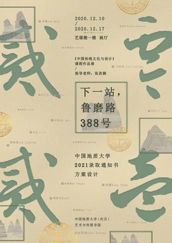 2020年12月10日,williamhill英国展厅举办了《下一站,鲁磨路388号——中国地质大学2021录取通知书方案设计》展。本展览是视觉传达专业方向《中国传统文化与设计》课程作品展,同时也是设计专业大类平台课程成果展示。