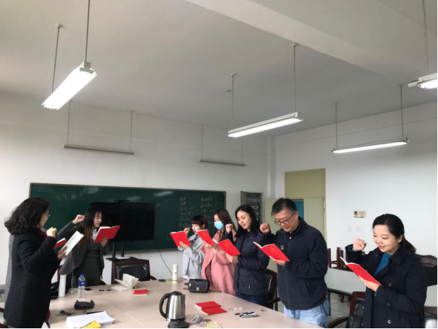 音乐系党支部全体党员按照规定动作要求,认真重温入党誓词、学习党章、缴纳党费、主题学习,针对学习内容大家纷纷发言,交流心得,统一思想,使自己在理论思想认识上与组织保持高度一致。并且同志们针对“学习强国”的学习相互交流学习经验,气氛活跃,成效显著。