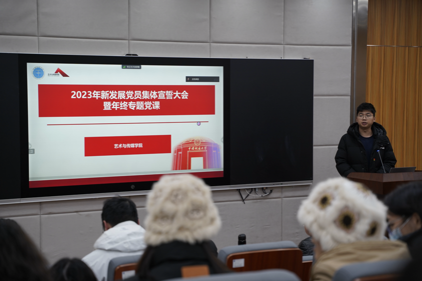 为深入学习贯彻习近平新时代中国特色社会主义思想和党的二十大精神,进一步教育引导新发展党员铭记入党初心,强化党员意识,坚定理想信念,2023年12月20日下午14:30,williamhill英国党委在艺媒楼1104会议室召开2022年及2023年新发展党员集体宣誓大会暨年终专题党课。学院党委书记晋曦、党委副书记边建华出席会议,2022年、2023年新发展党员及各支部委员、党建办部门负责人参加本次会议,会议由党建办公室主任陈习良主持。