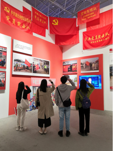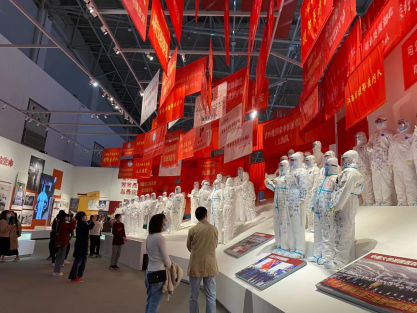 党员黄天佑说:“当我看到援鄂医疗队展区时,我深受感动,泪水在我的眼眶里打转”。