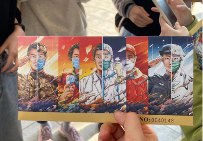 参观结束后,支部党员和积极分子纷纷排队领取了抗疫展览纪念品。