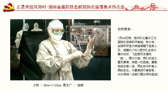 艺术家们则以笔墨为刀枪助力抗疫,刻画英雄群像、树立战疫榜样,书写人间大爱、激发民众力量,共筑战疫长城、捍卫华夏根基。在这场罕见的战役中祈望祖国能早日战胜疫情,浴火重生,更加繁荣昌盛、和平安康。