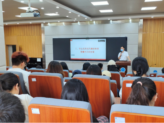 “清澈的爱只为中国”,晋曦书记为毕业生党员讲党课,从家国情怀到个人理想,从工作岗位到家庭和睦,晋曦书记嘱托毕业生党员们要有眼界和胸怀,在岗位上发光发热的同时也要强化团队协作,多奉献多付出,牢记校训“艰苦朴素、求真务实”。晋曦书记用“眼红了心就黑了”告诫大家牢记初心,不要因为利益摈弃道德底线和良知;用“天上掉馅饼的时候就是地上有陷阱的时候”告诫大家自重、自省、自谨、自律;以“手莫伸,伸手必被捉”告诫大家时刻坚持原则,廉洁奉公,强化纪律意识,筑牢拒腐防变的思想防线。讲话的最后,晋曦书记以“长风破浪会有时,直挂云帆济沧海”祝贺毕业生党员们顺利毕业,前程似锦,赢得学生们的阵阵掌声。